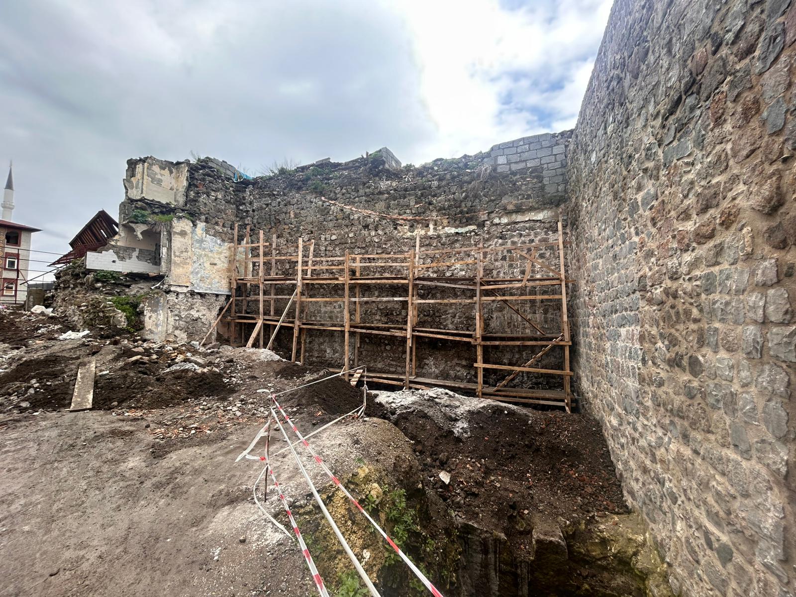 Sur duvarının batı bölümünde yürütülen kazı çalışmaları devam etmekte olup, bu